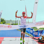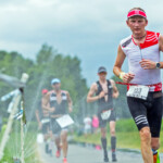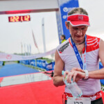 Start imprezy organizatorzy zaplanowali na godzinę 7:00 co spowodowało, że spałem dość krótko. Przed startem odwiedziliśmy jeszcze strefę zmian – ostatnie przygotowania i zakładanie pianki. Teraz już było mi wszystko jedno. Wydawało mi się, że jest dobrze, niewielu startujących (ok 240 osób), nie ma wiatru, fali – poznańska Malta wręcz zachęcała do kąpieli. Szybko wskoczyłem do wody, żeby się przyzwyczaić. Oczywiście zero widoczności – ale po co, przecież to nie basen. Chyba już całkowicie nie mam stresu związanego z pływaniem po akwenach otwartych. Zbliżała się godzina „0”. Start z wody, w sumie mój pierwszy raz, ale co to za trudność, nawet lepiej bo nie ma tak dużej pralki na starcie. Chyba 10min po czasie – poszło, zacząłem płynąć i zaczęło być miło i sympatycznie. Super woda, świetny flow, oddychanie bezproblemowe, nawigacja „w punkt”. Płynąłem stabilnie, wolno, na dużym komforcie tak, że pierwsze 1,9km przeleciało mi ekspresem. Oglądałem sobie brzeg, co jakiś czas kontrolując dystans od malutkich bojek, które wyznaczały tor wioślarski. Czasami ich nie było widać ale podłużny kształt jeziora Malta dobrze sprawdzał się nawigacyjnie. Naprawdę niewiele razy inny zawodnik zakłócił moją harmonię. Na bojach nawrotowych wiedziałem, że będzie dobrze. Wiedziałem, że jestem gdzieś w ¾ stawki, ale nie ostatni:). Z wody wyskoczyłem na 153miejscu po 1h 25min. Tutaj spotkało mnie dość dziwne uczucie. Nie byłem zmęczony ale chyba mój błędnik zbytnio przyzwyczaił się do kołysania. Biegnąc do T1 miałem wrażenie lekkiego przyciągania do lewych barierek. W T1 się nie spieszyłem, zdjąłem piankę i założyłem suchy strój kolarski. Ciekawe który czas w strefie zmian zająłem:) myślę, że jeden z ostatnich, ale było to zaplanowane. Po pierwsze komfort – potem reszta:). Wsiadłem na rower, normalnie – bez żadnego kombinowania z butami i recepturkami. Od tej pory wiedziałem, że trasa Poznań – Kostrzyn będzie mi towarzyszyć przez następne 6-7 godzin, zależnie od siły i kierunku wiatru. Planowałem co najmniej 2 dłuższe postoje ale skończyło się tylko na jednym związanym z wizytą w TojToju. Już na pierwszych 20 kilometrach musiałem skorzystać z ubikacji, co w stroju kolarskim „na szeklach” nie jest takie proste (szybkie). Trasa czterokrotnie kierowała z Poznania do Kostrzyna i z powrotem. One way z wiatrem, other way pod wiatr, a że ja wiatru nie znoszę, lekko nie było. Nie było także ciężko bo pod wiatr się nie szarpałem – utrzymywałem prędkość w okolicach 28/29km/h do ostatniego nawrotu. Tam, w okolicach 150km zdrowo zwolniłem bo dopadł mnie ból barków, wywołany całkowitym brakiem treningów w pozycji czasowej. Nie pomógł nawet Ibuprom, który nauczony doświadczeniem zawsze mam przy sobie. Do T2 dotarłem po 6h23min tracąc 4ry pozycje (157 miejsce). Czułem się bardzo dobrze, po zejściu z roweru ból karku ustał. Transition Area znowu na relaksie:) Spędziłem tam 9 sekund więcej niż w T1 (9:52) co pokazuje jak się guzdrałem. Do końca zabawy pozostał mi jeszcze maraton – ale to wiedziałem, że jakoś pójdzie. Tak szybko chciałem już biec, że po wybiegnięciu na trasę zapomniałem numeru startowego, który zdjąłem razem ze spodenkami kolarskimi. Nadrobiłem z 400 metrów ale nie spowodowało to mojej złości. Czułem duży luz i komfort w biegu. Od samego początku wyprzedzałem. Ale nie wiedziałem, czy wyprzedzam zawodników, którzy mają podobny dystans czy zawodników, którzy są pętlę (lub kilka) przede mną. Trasa biegowa to 8 kółek dookoła jeziora Malta. Zacząłem tempem 5:00/5:10 z postanowieniem, że pierwszy przystanek na większe jedzenie będzie po przebiegnięciu połówki dystansu. Na pierwszym kółku zrobiłem jeszcze jeden błąd. Zamyśliłem się za bardzo i skręciłem na metę. Po przebiegnięciu dodatkowych 200 metrów wróciłem na trasę:) Po połówce, gdzie moje tempo już systematycznie spadało – biegłem od bufetu do bufetu konsumując tam kilka pomarańczy. Z biegów ultra wiem, że pomarańcze mi bardzo pomagają. Chyba dystans IM to głównie rozsądne jedzenie i szanowanie zwiniętego i ściśniętego żołądka na rowerze. Po trasie spotykałem tych samych zagorzałych kibiców, którzy jakby mocniej kibicowali zawodnikom z czarnymi numerami startowymi (dystans długi). Po pierwszych 4ech, kółkach trasa zdecydowanie opustoszała, Zawodnicy z dystansu (Half) ukończyli zawody. Wtedy pogoda zaczęła się lekko psuć. Epogeum była burza z tropikalnym deszczem na 30tym kilometrze. Mnie już nic wtedy nie przeszkadzało, nawet chlupot wody w butach. Dodatkowym motywatorem było spotkanie na trasie znajomych z Bydgoszczy z Hrabią Wyszomirskim (z Luxemburga) na czele. Winiu & reszta byliście zajebiści. Dzięki za doping. Cała ekipa była chyba bardziej zdziwiona moim widokiem niż ja ich. Przyjechali kibicować Pawłowi, którego kilka razy spotkałem na trasie. Ostatnie kilometry to już przeplatany bieg i jedzenie pomarańczy. W pewnej chwili cos mnie lekko przymuliło i zdecydowanie zwolniłem – ale szybko się pozbierałem i końcówkę przyśpieszyłem. Na trasie maratonu wyprzedziłem kilkadziesiąt zawodników. Mój czas maratonu to 4h12min17sek (73 wśród startujących). Godzinę gorzej niż maraton „bez tri”. Dało mi to 131 pozycje OPEN.