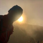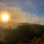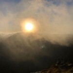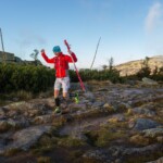 Początek i pierwszy etap biegu to Karkonosze. Początkowo ciemno i dość mokro. W górę i w dół, kamienie i korzenie, pełno wody – kurde nie fajnie byłoby już teraz wpaść do jakiegoś bajora. Bieg na Szrenicę, z powodu zmiany trasy poprowadzony był przez Przedział a potem przebiegaliśmy obok wodospadu Kamieńczyka. Wtedy już było jasno. Nie bardzo wiedziałem gdzie jestem – ale Kamieńczyk wydał mi się znajomy. W styczniu ski-tourowaliśmy tamtędy z Rafałem. Sceneria o niebo inna… Wtedy na kacu po wieczornym piwie, teraz świeży ale wystraszony dystansem do pokonania. Szrenica to był pierwszy punkt orientacyjny a zarazem początek grani Karkonoszy. Gdy się rozwidniało dostałem nieco energii, ale w dalszym ciągu myślałem o warunkach na grani. Czy nie przemarznę? Wiało jak cholera, miejscami nawet do 100km/h. Nie maiłem ciepłych ubrań, tylko ultra-lekką kurtkę wiatrową. To był mały błąd. Wybrałem kurtkę bez kaptura. Ratowałem zmarzniętą głowę buffem. Pomógł, nie było tak zimno, przede wszystkim nie wiało w uszy. Zaraz za Szrenicą (około 14go kilometra) wiało już potężnie. Wtedy też zaczął się prawdziwy bieg. Było trochę pod górkę i trochę z górki. Wielki Szyszak, którego kiedyś mijałem wspinając się na Szrenicę od strony czeskiej (bez szklaku) wyznaczał mi drogę w kierunku Śnieżnych Kotłów. W głowie miałem PK1 (pierwszy paśnik), który znajdował się na przełęczy Karkonoskiej tuż obok Szpindlerowej Boudy (20km trasy). Ale zanim PK1, trasa wiodła granią przez Śnieżne Kotły oraz Polskie i Czeskie Kamienie. Dobrze znałem ten szlak. Piękne widoki szybko przemieszczających się chmur powodowały, że kamera sama chciała filmować. Szczególnie dobieg do Śnieżnych Kotłów w blasku wschodzącego słońca (zobaczycie na filmie) był magiczny.
